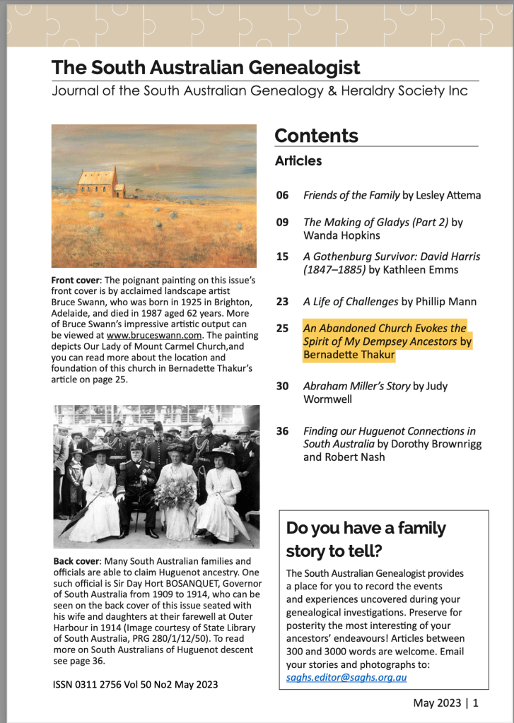 [1] I have written about the O’Toole family in my book, Irish Settlers in South Australia: The Hayes and O’Toole Families.